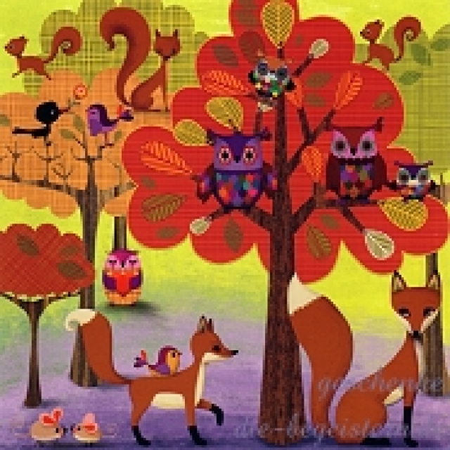 Postkarte Tiere im Wald[EGMM12-983]Quadratische Postkarte ~ Glanzlack |