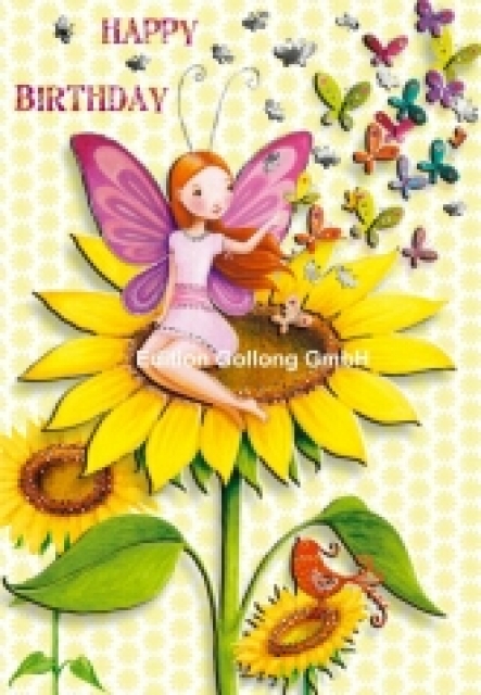 Klappkarte Happy Birthday, Sonnenblume[EGMM1-2693]Klappkarte mit Umschlag ~ Blind- und Folienprägung |