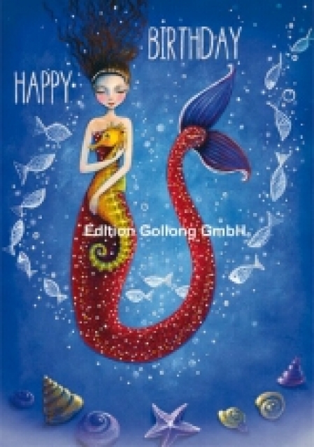 Klappkarte Happy Birthday, Meerjungfrau[EGMM1-3632]Klappkarte mit Umschlag ~ Folienprägung |