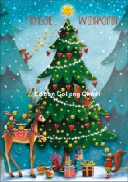 Klappkarte Weihnachten im Wald[EGMM101-6501]Doppelkarte mit Umschlag (weiß mit Sternen) ~ Folienprägung |