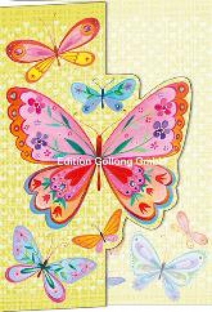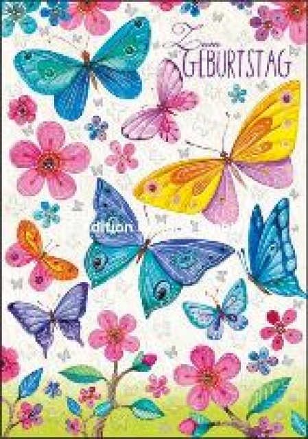 Klappkarte Geburtstag, Schmetterlinge[EGMM1-39491]Doppelkarte mit farbigem Umschlag ~ Blind- und Folienprägung |