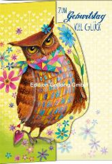 Klappkarte Geburtstag, Eule[EGMM1-39041]Doppelkarte mit farbigem Umschlag ~ Vorderseite ausgestanzt |