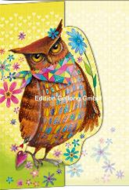 Klappkarte Eule[EGMM1-3904]Doppelkarte mit farbigem Umschlag ~ Vorderseite ausgestanzt |