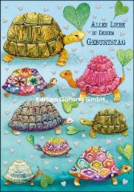 Klappkarte Geburtstag, Schildkröten[EGMM1-40531]Doppelkarte mit farbigem Umschlag ~ Blind- und Folienprägung |