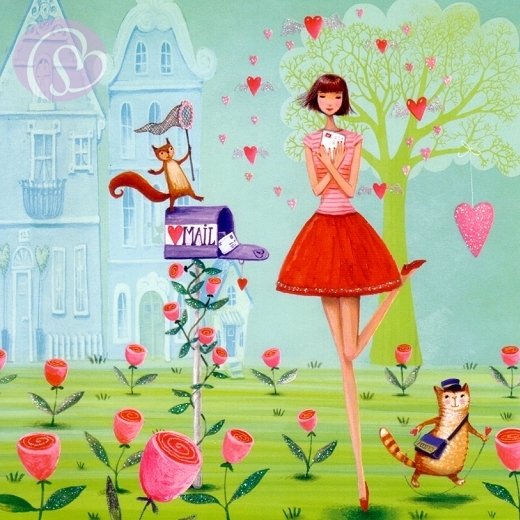 Postkarte Mädchen mit Brief[EGMM12-1408]Quadratische Postkarte ~ Glimmerlack |