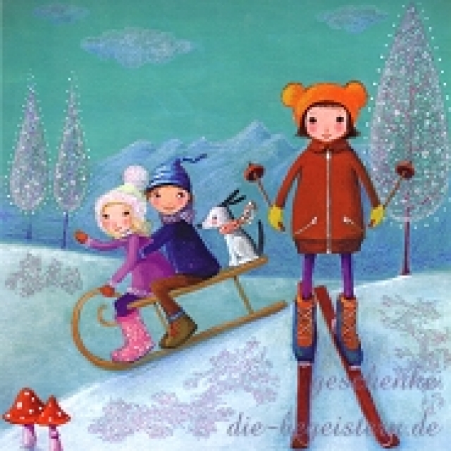 Postkarte Winterspaß[EGMM112-236]Quadratische Postkarte ~ Glimmerlack |