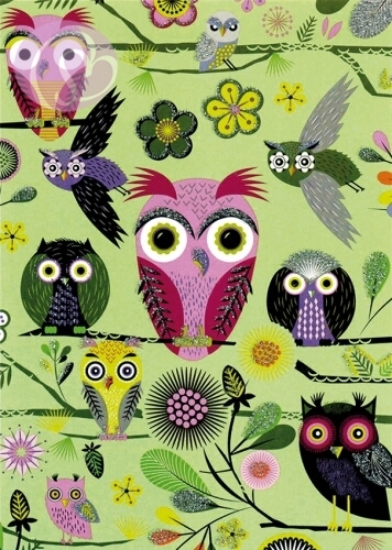 Postkarte Elegant Owls, grün[RLBPC039]10,5 * 14,8 cm (DIN A6) ~ Glimmerlack