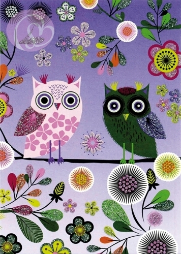 Postkarte Elegant Owls, violett[RLBPC038]10,5 * 14,8 cm (DIN A6) ~ Glimmerlack