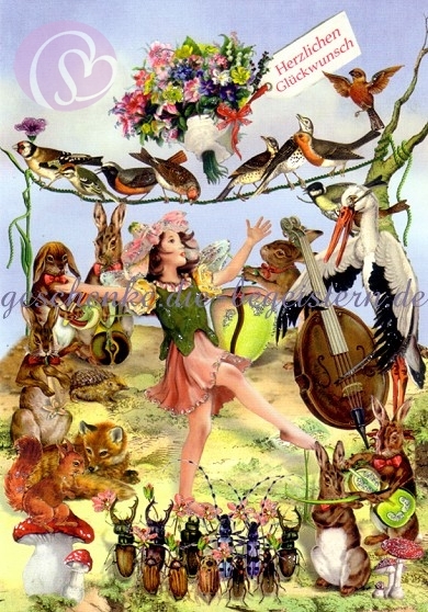 Postkarte Herzlichen Glückwunsch, Dancing Girl[RLBPC052]10,5 * 14,8 cm (DIN A6) ~ Glimmerlack