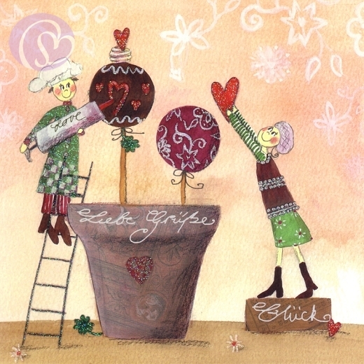 Postkarte Liebe Grüße[TCIB50-074]Quadratische Postkarte ~ Glimmerlack |