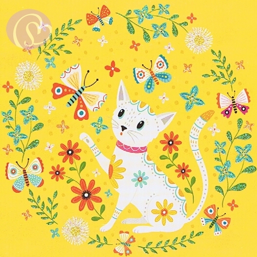 Postkarte Kätzchen mit Schmetterlingen[EGTR12-1627]Quadratische Postkarte ~ Glimmerlack |