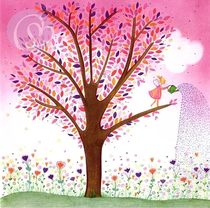 Postkarte Elfe gießt Blumenwiese[TCLH-50-213]Quadratische Postkarte ~ mit Glimmerlack