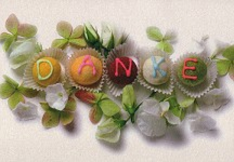 Klappkarte Danke, Pralinen[EG1-1339]Doppelkarte mit Umschlag (lindgrün) ~ Perlmutt-Optik |