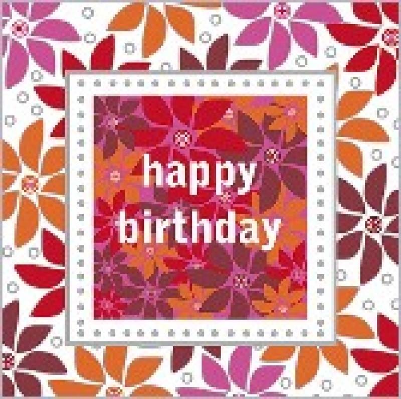 Klappkarte Happy Birthday, Blumen[QP1174RS]Quadratische Klappkarte mit Umschlag ~ Blindprägung |