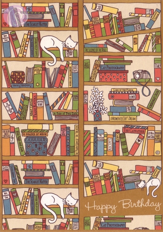 Postkarte Happy Birthday, Bücherregal[PK-PDBR01]Naturpapier, Recyclingpapier 10,5 * 14,8 cm (DIN A6)
