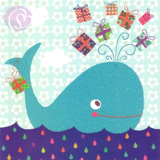 Postkarte Happy Birthday, Wal[IC.C.G1116]Quadratische Postkarte ~ Glimmerlack |
