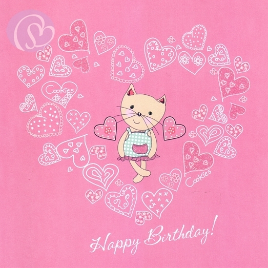 Postkarte Happy Birthday, Katze[EG12-1427]Quadratische Postkarte ~ Glimmerlack |