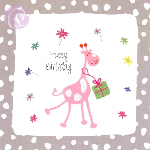 Postkarte Happy Birthday, Giraffe[EG12-1437]Quadratische Postkarte ~ Glimmerlack |