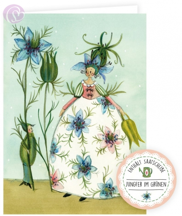 Samenkarte Jungfer im Grünen[GZ-SK-14638]Samenkarte mit Illustration von Silke Leffer ° Klappkarte, 11,5 * 16,5 cm