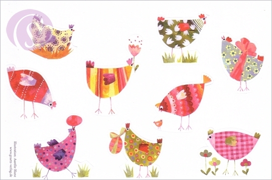 Deko-Sticker Verrückte Hennen[GZ05109]Neun dekorative Sticker von Aurelie Blanz - zum Verzieren von Geschenken, Briefpost und als schöne Dekoration. Bogengröße 19,5 * 13 cm Wer die Sticker gerne verschenken möchte, zwei Bogen (18 Sticker) sind in einer Klarsichthülle vepackt. |