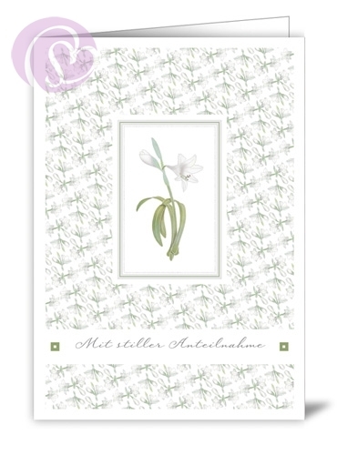 Trauerkarte Ivory White, Mit stiller Anteilnahme[QP0912]Klappkarte mit Umschlag (creme) ~ Blind- und Folienprägung |