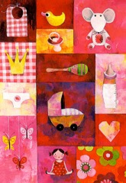Klappkarte Baby, Karo rosa[GZ14537AB]Doppelkarte mit Umschlag |