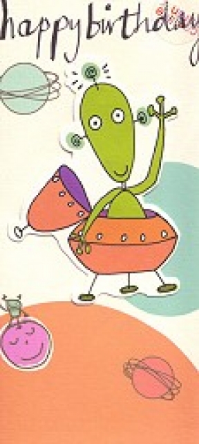 Klappkarte Happy Birthday[CGYHJ014]Doppelkarte mit Umschlag ~ Applikation: Ufo |