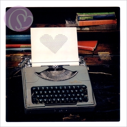 Postkarte Herz & Love, Schreibmaschine[LOVE14]Quadratische Postkarte, 14 * 14 cm ~ Karte beschichtet, Foto in Glanzlack |