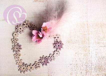Postkarte Herz mit Blüten & Federn[FEA-PK831]10,5 * 14,8 cm
