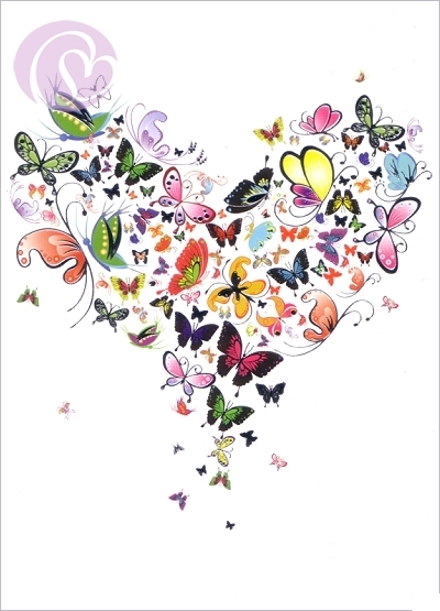 Postkarte Herz aus Schmetterlingen[EG2-2485]10,5 * 14,8 cm ~ Folienprägung |