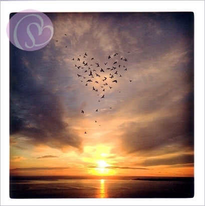 Postkarte Herz, Vögel[LOVE13]Quadratische Postkarte, 14 * 14 cm ~ Karte beschichtet, Foto in Glanzlack |