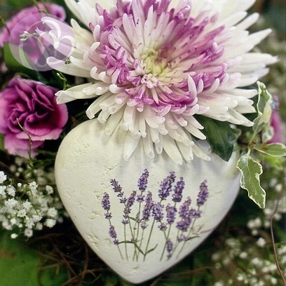 Postkarte Lavendel-Herz & Blumen[TC50-042]Quadratische Postkarte