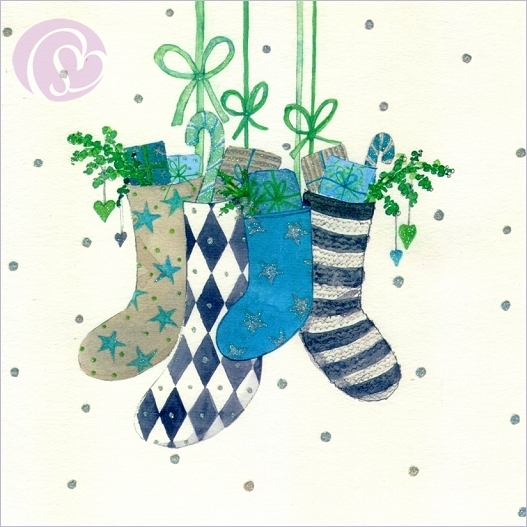 Postkarte Weihnachtsstrümpfe[56-099_BES]Quadratische Postkarte ~ Glimmerlack |