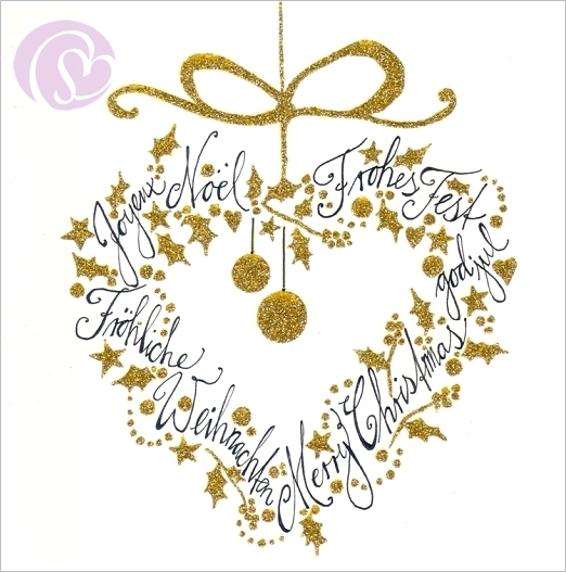 Postkarte Frohes Fest, mehrsprachig[56-096_BES]Quadratische Postkarte ~ Glimmerlack |