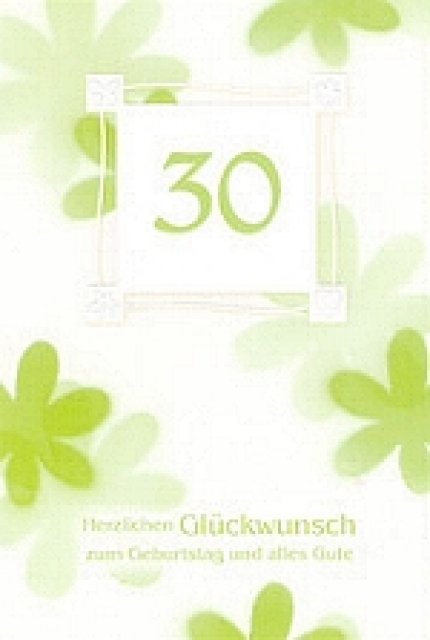 Klappkarte 30. Geburtstag, Blüten[JK83003]Doppelkarte mit Umschlag (apfelgrün) ~ Blindprägung |