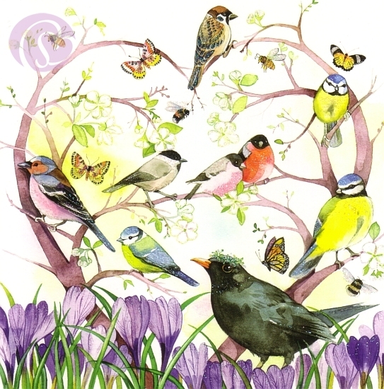 Postkarte Vögel in Herz aus Zweigen[TCKH-50-308]Quadratische Postkarte ~ mit Glimmerlack