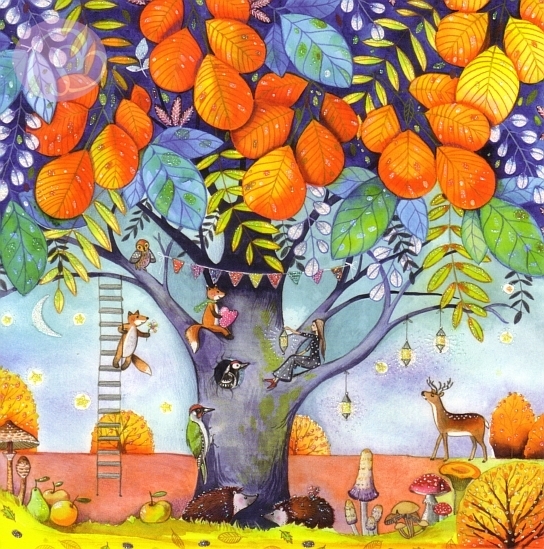 Postkarte Tiere im Herbst[TCKH-50-303]Quadratische Postkarte ~ mit Glimmerlack