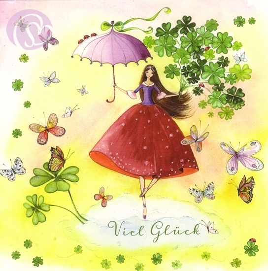 Postkarte Viel Glück[TCKH-50-294]Quadratische Postkarte ~ mit Glimmerlack